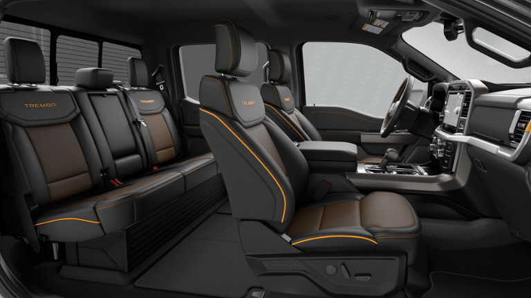 Bed Utility Package: Tailgate Step with Work Surface; 4 Pickup Box Tie-Down Plates; LED Box Lighting; Power Tailgate. Equipment Group 402B: 18" Alloy with Dark Matte Finish Wheels; Power-Adjustable Pedals with Memory; Electronic Locking with 3.73 Axle Ratio; Electronic 10-Speed Automatic Transmission; B&O Sound System by Bang and Olufsen; Unique Tremor Leather-Trimmed Seats; Front Axle with Torsen Differential; Rain-Sensing Wipers; 2-Speed Automatic AWD with Hi-Lock Transfer Case; 275/70R18 All-Terrain Tires; Media Bin Door; Universal Garage Door Opener; Heated Steering Wheel; Power Glass Heated Sideview Mirrors. Mobile Office Package: Wireless Charging; Partitioned Lockable Rear Storage; Console Worksurface. Tow/haul Package: Integrated Trailer Brake Controller. BlueCruise (equipment + 1-Time Purchase). **Equipment listed is based on original vehicle build and subject to change. Please confirm the accuracy of the included equipment by calling the dealer prior to purchase.**