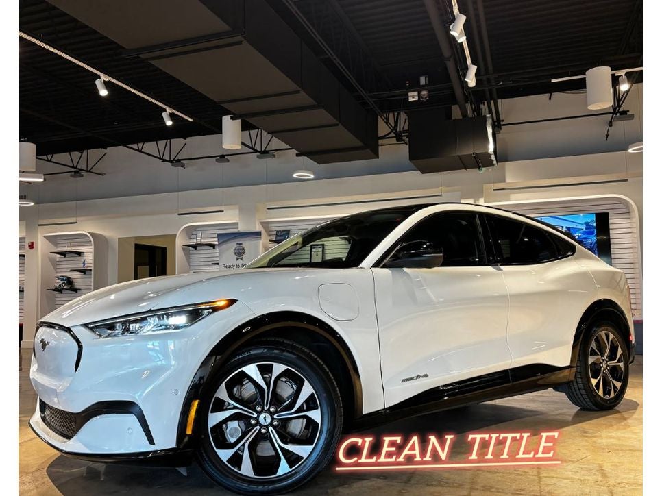 This vehicle is a certified CARFAX 1-owner. Apple CarPlay: Seamless smartphone integration for this unit - stay connected and entertained on the go! This model has a clean CARFAX vehicle history report. This unit is pure luxury with a heated steering wheel. The Ford Mustang Mach-E comes equipped with Android Auto for seamless smartphone integration on the road. The leather seats in the vehicle are a must for buyers looking for comfort, durability, and style. You'll never again be lost in a crowded city or a country region with the navigation system on the Ford Mustang Mach-E. This Ford Mustang Mach-E has auto-adjust speed for safe following. Protect this model from unwanted accidents with a cutting edge backup camera system. This mid-size suv features a hands-free Bluetooth® phone system. Set the temperature exactly where you are most comfortable in the Ford Mustang Mach-E. The fan speed and temperature will automatically adjust to maintain your preferred zone climate.This unit has automated speed control that adjusts to maintain a safe following distance, enhancing highway driving convenience. This model is equipped with all wheel drive. This 2021 Ford Mustang Mach-E comes equipped with Android Auto for seamless smartphone integration on the road. Apple CarPlay: Seamless smartphone integration for this Ford Mustang Mach-E - stay connected and entertained on the go! The high efficiency automatic transmission shifts smoothly and allows you to relax while driving. See what's behind you with the back up camera on this vehicle. This vehicle is a certified CARFAX 1-owner. Our dealership has already run the CARFAX report and it is clean. A clean CARFAX is a great asset for resale value in the future. Maintaining a stable interior temperature in this unit is easy with the climate control system. This mid-size suv features cruise control for long trips. It has a Electric Motor high output engine. Bluetooth® technology is built into this 2021 Ford Mustang Mach-E , keeping your hands on the steering wheel and your focus on the road. Keep your hands warm all winter with a heated steering wheel in this mid-size suv . The leather seats in this mid-size suv are a must for buyers looking for comfort, durability, and style. Help alleviate lower back pain with the driver seat lumbar support in this mid-size suv. The spacious cabin accommodates your family and friends in comfort. Take it to the mountains or the beach. it can handle it all. You'll never again be lost in a crowded city or a country region with the navigation system on this unit. Enjoy the convenience of the power liftgate on this vehicle. This model embodies class and sophistication with its refined white exterior.