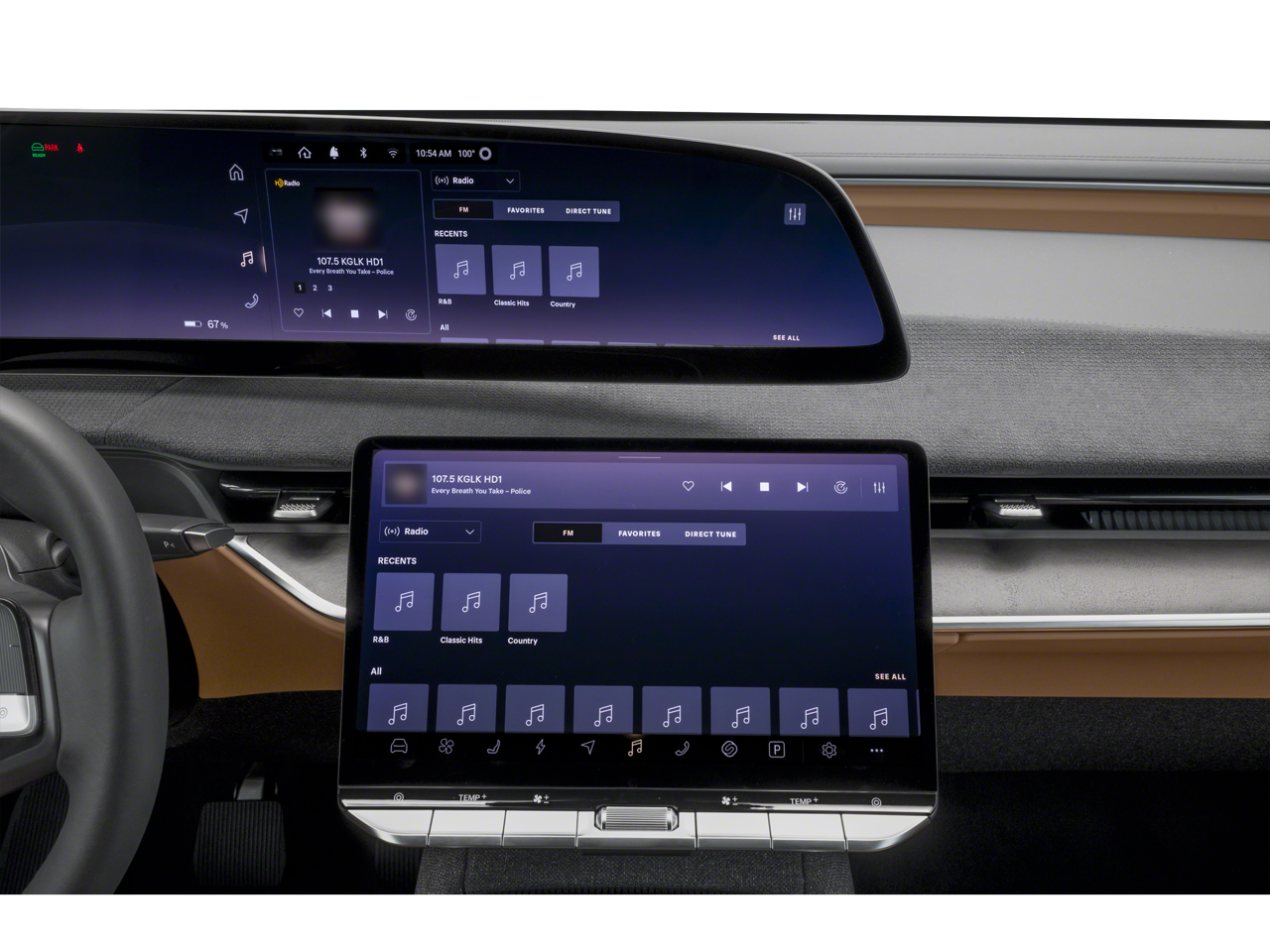 - Radio: AM/FM/HD -inc: 12.6" landscape center touchscreen display, native support from streaming apps including Spotify, iHeartRadio, TuneIn, Pocket Casts and Tidal (paid connectivity), Bluetooth® wireless technology and wireless charging pad